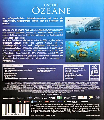 Bis heute sind die Meere für den Menschen eine Welt voller Geheimnisse und Schönheit geblieben. Jenseits der Meeresoberfläche und bis in unberührte Tiefen hinein entführt Unsere Ozeane in eine Welt der Vielfalt und Harmonie des Lebens. Von den majestätischen Walen, über die schillernden Heringsschwärme bis hin zu den bizarr geformten Lebewesen der Tiefsee, folgt Unsere Ozeane den Bewohnern der Weltmeere.