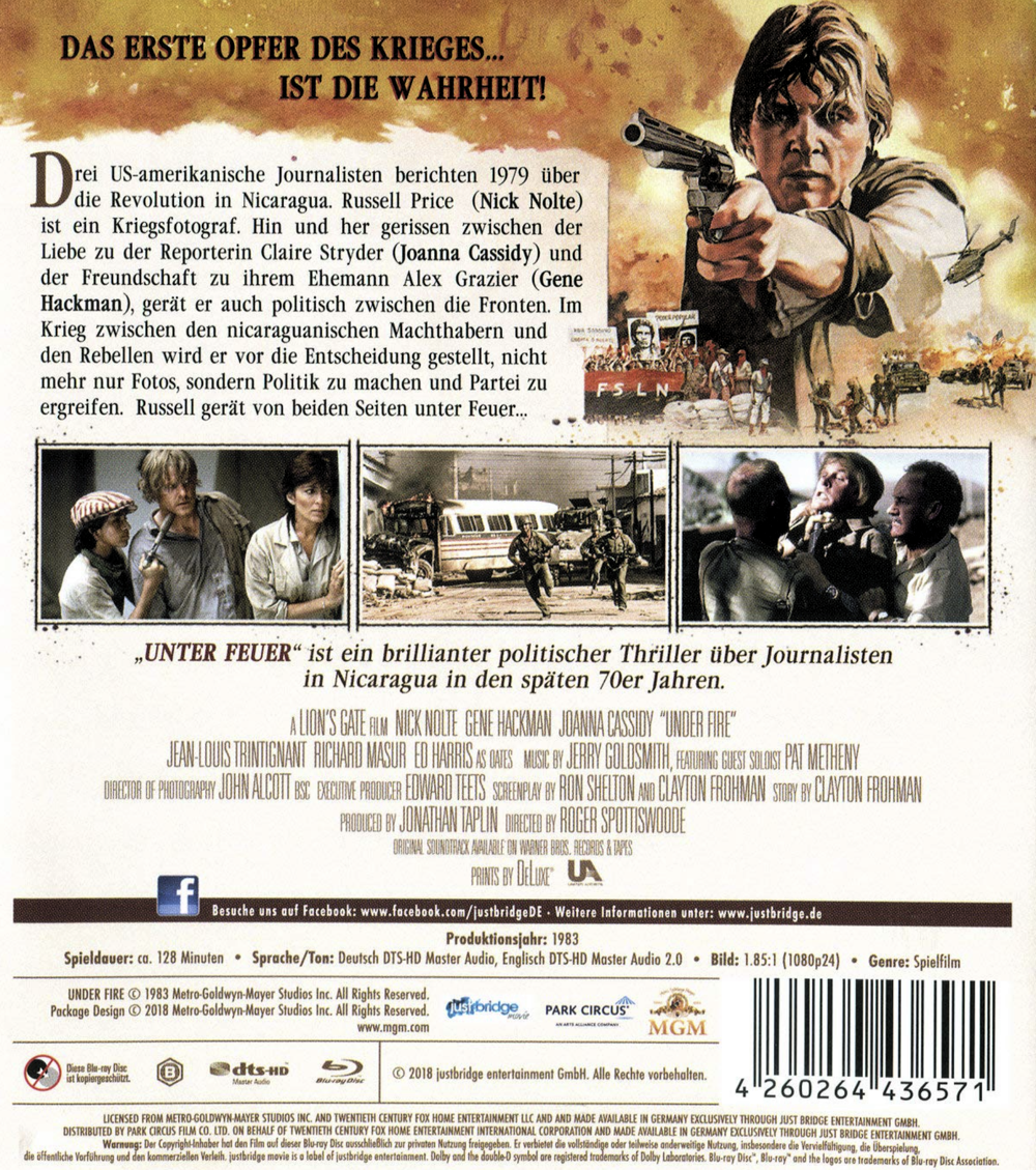 Unter Feuer ist ein brillianter politischer Thriller über Journalisten in Nicaragua in den späten 70er Jahren. Drei US-amerikanische Journalisten berichten 1979 über die Revolution in Nicaragua. Russell Price (Nick Nolte) ist ein Kriegsfotograf. Hin und her gerissen zwischen der Liebe zu der Reporterin Claire Stryder (Joanna Cassidy) und der Freundschaft zu ihrem Ehemann Alex Grazier (Gene Hackman), gerät er auch politisch zwischen die Fronten. Im Krieg zwischen den nicaraguanischen Machthabern und den Rebellen wird er vor die Entscheidung gestellt, nicht mehr nur Fotos, sondern Politik zu machen und Partei zu ergreifen. Russell gerät von beiden Seiten unter Feuer...