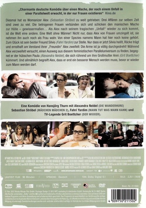 Diesmal hat es Womanizer Alex zu weit getrieben: Drei Affären zur selben Zeit sind zwei zu viel. Die betrogenen Frauen verbünden sich und schicken den manischen Macho zur Hölle - gewissermassen... Als Alex nach seinem tragischen "Unfall" wieder zu sich kommt, ist die Welt eine andere. Eine Welt ohne Männer! Nicht nur, dass Alex von Frauen umzingelt ist, sie nehmen ihn auch noch als Frau wahr. Von einer Spezies namens Mann hat hier noch keine gehört. Zum Glück ist sein bester Freund Silvio zur Stelle. Nur dass er jetzt Silvia heisst, Röcke trägt und ernsthaft am Verstand ihrer "Freundin" Alex zweifelt: Die Arme ist ja völlig durchgedreht! Während Alex verzweifelt versucht, einen Ausweg aus diesem feministischen Paralleluniversum zu finden, begegnet er der hübschen Paula, die sich rührend um ihre Grossmutter Anni kümmert. Und allmählich begreift Alex, dass er erst ein besserer Mensch werden muss, bevor er wieder zum Mann werden darf.