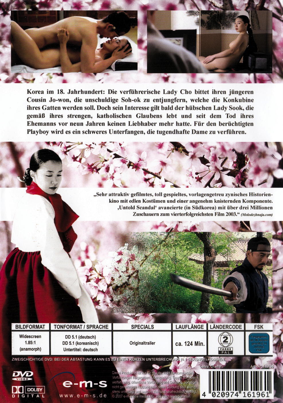 Korea im 18. Jahrhundert: Die verführerische Lady Cho bittet ihren jüngeren Cousin, ein unschuldiges Mädchen zu entjungfern, welches die Konkubine ihres Gatten werden soll. Doch sein Interesse gilt bald der hübschen Lady Sook, die gemäss ihres strengen, katholischen Glaubens lebt und seit dem Tod ihres Ehemanns vor neun Jahren keinen Liebhaber mehr hatte. Für den berüchtigten Playboy wird es ein schweres Unterfangen, die tugendhafte Dame zu verführen.