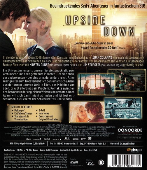 Adam (Jim Sturgess) lebt in einem Universum, das so ganz anders ist als unseres. Wenn er nach oben sieht, ist da eine gespiegelte Welt statt eines Himmels. Alles steht praktisch auf dem Kopf, Wälder, Ozeane und die Menschen dort oben haben eine ganz andere Schwerkraft. Adam lebt an sich zufrieden mit seinem bescheidenen Leben in dem einen Universum, doch hat er, als er noch klein war, ein Mädchen getroffen, das er nicht vergessen kann. Eden (Kirsten Dunst) lebt jedoch in dem anderen Universum, das sich direkt über seinem Kopf befindet. Diese andere Welt ist wohlhabender und elitärer als seine eigene. Die Regierung verbietet jeglichen Kontakt zwischen beiden Welten. Eines Tages sieht Adam die erwachsene Eden und verliebt sich unsterblich in die junge Frau, doch ein Zusammenkommen scheint nicht möglich. Er beschließt, um sie und das gemeinsame Glück zu kämpfen - und wenn es sein muss, sogar die Gesetze der Schwerkraft zu brechen.