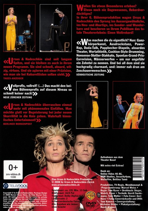 In Ihrer 6. Bühnenproduktion wagen Ursus & Nadeschkin den Sprung ins Aussergewöhnliche, ins Neu - und Abartige, ins Sonder- und Wunderbare und bescheren so ihrem Publikum das totale Theatererlebnis: Einen Weltrekord!