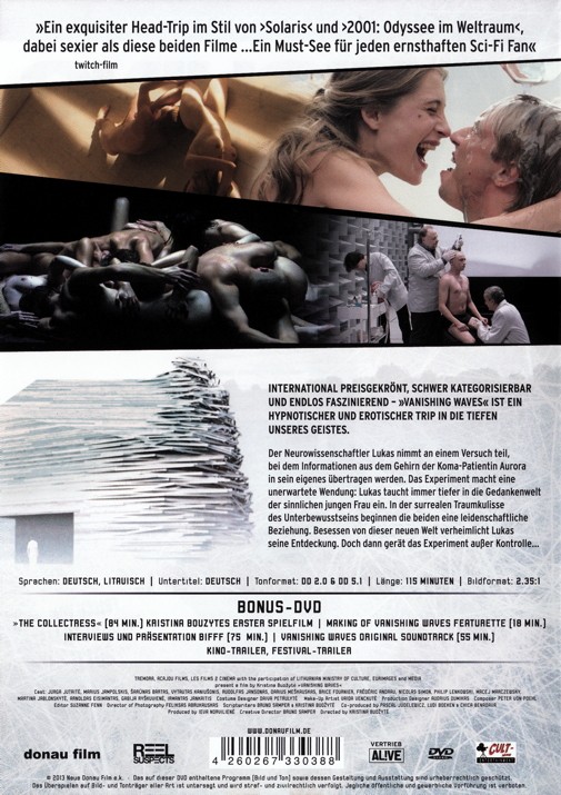 Der Neurowissenschaftler Lukas nimmt an einem Versuch teil, bei dem Informationen aus dem Gehirn der Koma-Patientin Aurora in sein eigenes übertragen werden. Das Experiment nimmt eine unerwartete Wendung: Lukas taucht immer tiefer in die Gedankenwelt der sinnlichen jungen Frau ein. In der surrealen Traumkulisse des Unterbewusstseins beginnen die beiden eine leidenschaftliche Beziehung. Besessen von dieser neuen Welt verheimlicht Lukas seine Entdeckung. Doch dann gerät das Experiment außer Kontrolle... International preisgekrönt, schwer kategorisierbar und endlos faszinierend - "Vanishing Waves" ist ein hypnotischer und erotischer Trip in die Tiefen unseres Geistes.