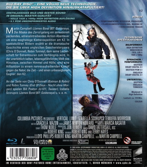 Martin Campbell "James Bond 007 Goldeneye", "Die Maske des Zorro" gelang ein sensationell packendes, adrenalintreibendes Action-Abenteuer um eine waghalsige Kletterexpedition am K2. In spektakulären Bildern erzählt er die dramatische Geschichte eines ungleichen Geschwisterpaars Chris O'Donnell, Robin Tunney, dem seine Leidenschaft für Extremtouren zum Verhängnis wird. In der unerbittlich kalten, lebensgefährlichen Welt des Himalaya, zwischen Himmel und Hölle, wird eine Hilfsaktion zu einem nervenaufreibenden Kampf gegen die Natur, die Zeit - und einen unbesiegbaren Gegner den K2.