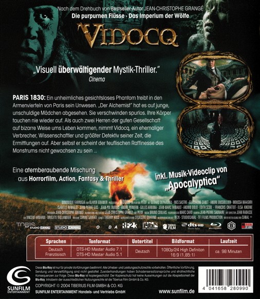 Paris 1830: Ein unheimliches gesichtsloses Phantom treibt in den Armenvierteln von Paris sein Unwesen. "Der Alchemist" hat es auf junge, unschuldige Mädchen abgesehen. Sie verschwinden spurlos, ihre Körper tauchen nie wieder auf. Als auch zwei Herren der guten Gesellschaft auf bizarre Weise ums Leben kommen, nimmt Vidocy, ehemaliger Verbrecher, Wissenschaftler und grösster Detektiv seiner Zeit, die Ermittlungen auf. Aber selbst er scheint der teuflischen Raffinesse des Monstrums nicht gewachsen zu sein.