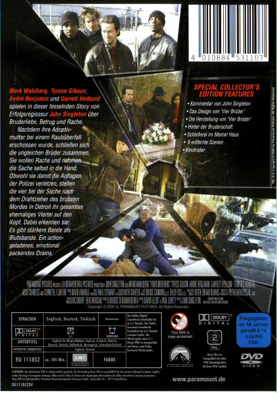 Nachdem ihre Adoptivmutter bei einem Raubüberfall erschossen wurde, schliessen sich die ungleichen Brüder zusammen. Sie wollen Rache und nehmen die Sache selbst in die Hand. Obwohl sie damit die Auflagen der Polizei verletzen, stellen die Vier bei der Suche nach dem Drahtzieher des brutalen Mordes in Detroit ihr gesamtes ehemaliges Viertel auf den Kopf...