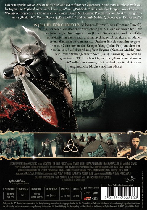 793 Jahre vor Christus: Wikinger-Führer Eirick wird auserkoren, die drohende Vernichtung seines Clans abzuwenden! Der machthungrige Donnergott Thor ist nämlich auf der unerbittlichen Suche nach uralten mythischen Artefakten, mit denen er unaufhaltsam werden kann... Und nur Eirick kann ihn stoppen! Ihm zur Seite stehen der Krieger Yang aus dem fernen Orient, die Schwertkämpferin Brynna und sein treuer Waffengefährte Sven! Werden sie gemeinsam Thor rechtzeitig vor der "Blut-Sonnenfinsternis" aufhalten können, die ihm dank der Artefakte eine unglaubliche Macht verleihen würde?