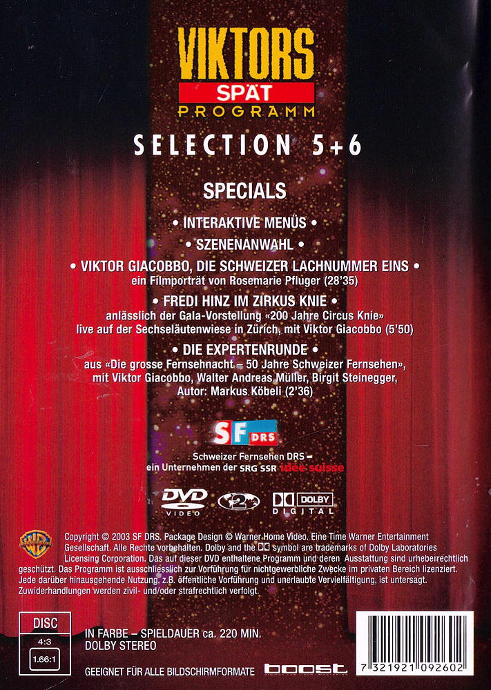 Viktors Universum Finale beinhaltet: - Vikor Giacobbo, die Schweizer Lachnummer Eins - Ein Filmportrait von Rosemarie Pfluger. - Fredi Hinz im Zirkus Knie, anlässlich der Gala-Vorstellung 200 Jahre Circus knie live auf der Sechseläutenwiese in Zürich, mit Victor Giacobbo. - Die Expertenrunde, aus Die grosse Fernsehnacht - 50 Jahre Schweizer Fernsehen, mit Viktor Giacobbo, Walter Andreas Müller, Birgit Steinegger.