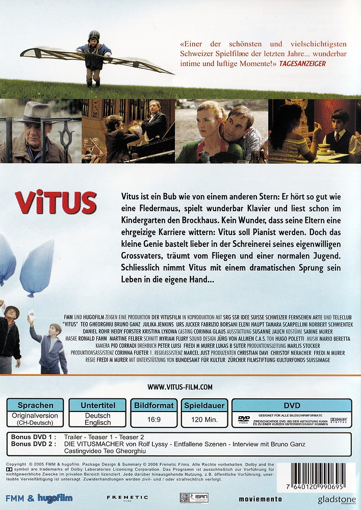 Vitus ist ein Bub wie von einem anderen Stern: Er hört so gut wie eine Fledermaus, spielt wunderbar Klavier und liest schon im Kindergarten den Brockhaus. Kein Wunder, dass seine Eltern eine ehrgeizige Karriere wittern: Vitus soll Pianist werden. Doch das kleine Genie bastelt lieber in der Schreinerei seines eigenwilligen Grossvaters, träumt vom Fliegen und einer normalen Jugend. Schliesslich nimmt Vitus mit einem dramatischen Sprung sein Leben in die eigene Hand...