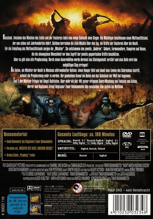 Russland. Zwischen den Mächten des Lichts und der Finsternis tobte eine ewige Schlacht ohne Sieger. Die Mächtigen beschlossen einen Waffenstillstand, der nun schon seit Jahrhunderten währt. Seitdem herrschen die Licht-Mächte über den Tag, die Kräfte der Finsternis über die Nacht. Für die Einhaltung des Waffenstillstands sorgen die "Wächter". Sie entstammen den jeweils "Anderen". Sehern, Formwandlern, Vampiren und Hexen, die die ahnungslose Menschheit vor dem Zugriff der jeweils gegnerischen Kräfte beschützen. Aber es gibt eine alte Prophezeiung: Durch einen Auserwählten werde dereinst das Gleichgewicht zerstört und eine Seite wird den endgültigen Sieg erringen! Als Anton, ein Wächter der Nacht in Moskaus albtraumhafter Kulisse, einen Vampir tötet und damit eine Lawine des Schreckens lostritt, scheint die Prophezeiung wahr zu werden. Der gnadenlose Kampf um Anton und das Schicksal der Welt hat begonnen.