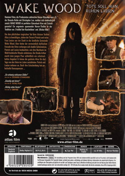 Um den plötzlichen tragischen Tod ihrer kleinen Tocher Alice zu bewältigen, ziehen der Tierarzt Patrick uns seine Frau Louise aus der Stadt in die ländliche Gemeinde Wake Wood. Aber hinter der vermeintlich isyllischen Fassade des Ortes verbergen sich dunkle Geheimnisse. Patrick und Louise beobachten, wie ihre Nachbarn im Wald heidnische Rituale zelebrieren. Der Druide Arthur macht dem jungen Paar anschliesslich ein schicksalhaftes Angebot: Er könne die getötete Alice für drei Tage von den Toten ins Leben zurückholen. Patrick und Louise mehmen an. Doch ihre Entscheidung hat unheilvolle Konsequenzen...