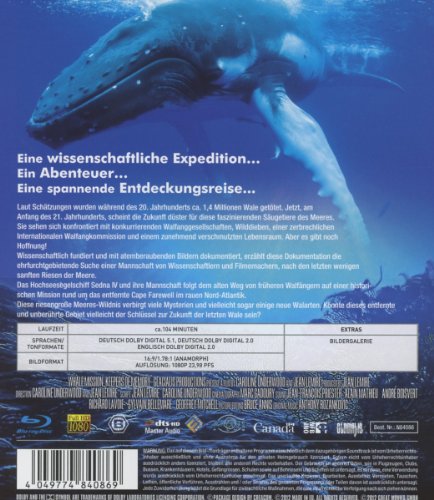 Laut Schätzungen wurden während des 20. Jahrhunderts ca. 1,4 Millionen Wale getötet. Jetzt, am Anfang des 21. Jahrhunderts, scheint die Zukunft düster für diese faszinierenden Säugetiere des Meeres. Sie sehen sich konfrontiert mit konkurrierenden Walfanggesellschaften, Wilddieben und einem zunehmend verschmutzten Lebensraum. Aber es gibt noch Hoffnung! Wissenschaftlich fundiert und mit atemberaubenden Bildern dokumentiert erzählt diese Dokumentation die ehrfurchtgebietende Suche einer Mannschaft von Wissenschaftlern und Filmemachern nach den letzten wenigen sanften Riesen der Meere. Das Hochseesegelschiff Sedna IV samt Mannschaft folgt dem alten Weg von früheren Walfängern auf einer historischen Mission rund um das entfernte Cape Farewell im rauen Nordatlantik. Diese riesengroße Meeres-Wildnis verbirgt viele Mysterien und vielleicht sogar einige neue Walarten. Könnte dieses entfernte und unberührte Gebiet vielleicht der Schlüssel zur Zukunft der letzten Wale sein?