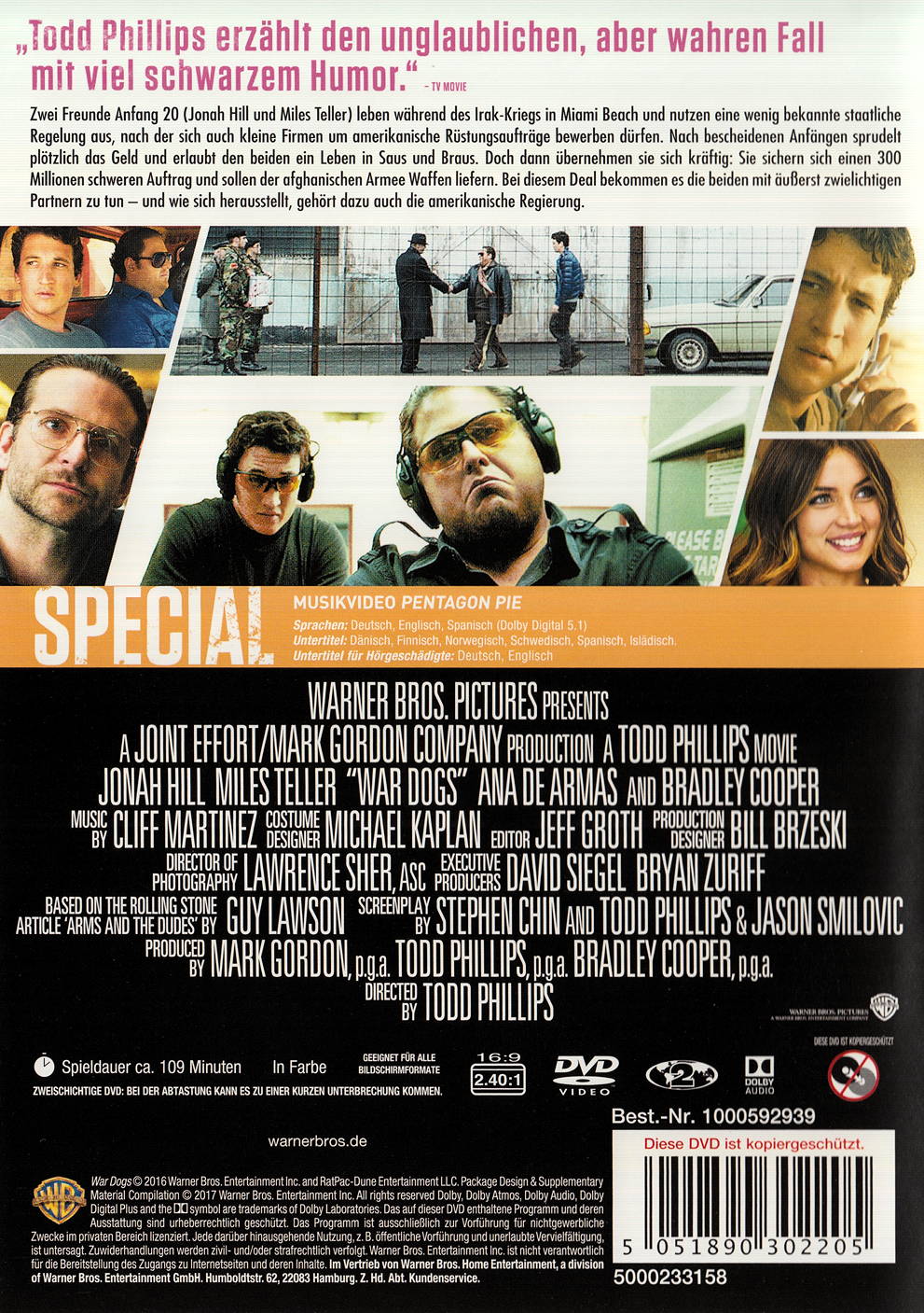 "War Dogs" beruht auf einer wahren Geschichte: Zwei Freunde Anfang 20 leben während des ersten Irak-Kriegs in Miami und nutzen eine wenig bekannte staatliche Regelung aus, nach der sich auch kleine Firmen um amerikanische Rüstungsaufträge bewerben dürfen. Nach bescheidenen Anfängen sprudelt plötzlich das Geld und erlaubt den beiden ein Leben in Saus und Braus. Doch dann verheben sie sich kräftig: Sie sichern sich einen 300 Millionen schweren Auftrag und sollen der afghanischen Armee Waffen liefern - bei diesem Deal bekommen es die beiden mit äusserst zwielichtigen Partnern zu tun - und wie sich herausstellt, gehört dazu auch die amerikanische Regierung.