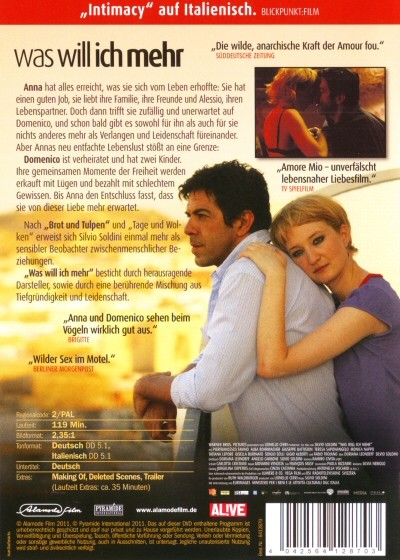 Anna hat alles erreicht, was sie vom Leben erhoffte: Sie hat einen guten Job, sie liebt ihre Familie, ihre Freunde und Alessio, ihren Lebenspartner. Die beiden planen gemeinsame Kinder. Kurz: Annas Leben verläuft in geregelten Bahnen. Doch dann trifft sie zufällig und unerwartet auf Domenico und schon bald können beide nicht mehr voneinander lassen. Zum ersten Mal gibt es sowohl für ihn als auch für sie nichts anderes als Verlangen und Leidenschaft. Aber Annas neu entfachte Lebenslust stößt an eine Grenze: Domenico ist verheiratet und hat zwei Kinder. Ihre gemeinsamen Momente der Freiheit werden erkauft mit Lügen und bezahlt mit schlechtem Gewissen. Bis Anna den Entschluss fasst, dass sie von dieser Liebe mehr erwartet.