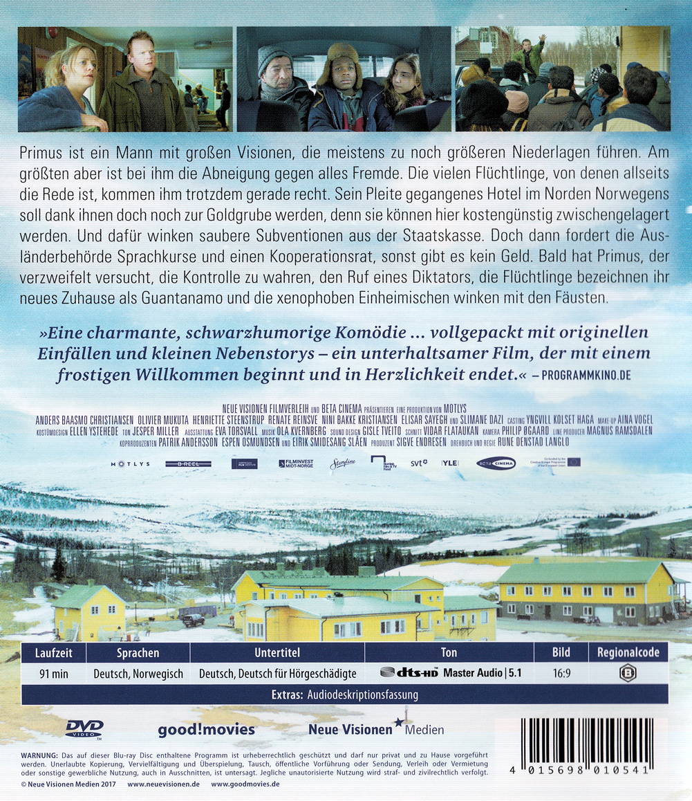 Primus ist ein Mann mit grossen Visionen und noch grösseren Niederlagen. Am grössten aber ist bei ihm die Abneigung gegen alles Fremde. Die vielen Flüchtlinge, von denen allseits die Rede ist, kommen ihm trotzdem gerade recht. Sein Pleite gegangenes Hotel im Norden Norwegens soll dank ihnen doch noch zur Goldgrube werden, denn sie können hier kostengünstig zwischengelagert werden. Und dafür winken saubere Subventionen aus der Staatskasse. Seine Frau Hanni und Tochter Oda trauen ihren Augen nicht, als ganze Busladungen in das Hotel einmarschieren, in dem Zimmer, Türen, Heizung und Strom fehlen. Nicht vorbereitet ist Primus auf die diplomatischen Verwicklungen, die nun auf ihn lauern: Christen weigern sich mit Arabern, Sunniten mit Schiiten das Zimmer zu teilen. Der optimistische, aber etwas vorlaute Abedi erweist sich als unverzichtbarer Vermittler und wird für den Einzelgänger Primus schnell zum ständigen Begleiter. Doch dann fordert die Ausländerbehörde auch noch Sprachkurse und einen Kooperationsrat, sonst gibt es kein Geld. Bald hat Primus, der verzweifelt versucht, die Kontrolle zu wahren, den Ruf eines Diktators, die Flüchtlinge bezeichnen ihr neues Zuhause als Guantanamo und die xenophoben Einheimischen winken mit den Fäusten. Heilloses Chaos scheint vorprogrammiert, dabei hat Primus längst etwas gewonnen, worauf er gar nicht aus war: einen Freund trotz aller Unterschiede.