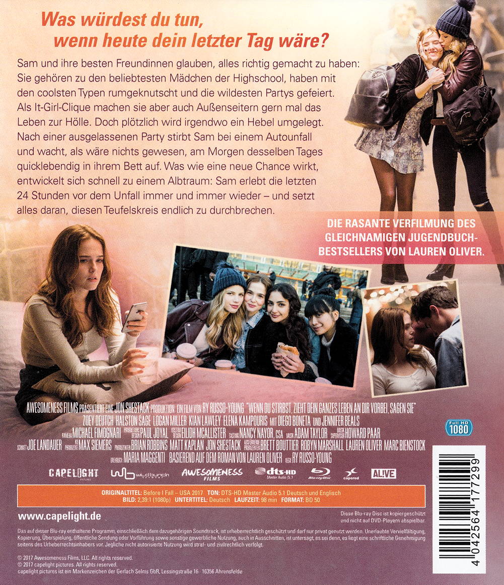 Was würdest du tun, wenn heute dein letzter Tag wäre? Sam und ihre besten Freundinnen glauben, alles richtig gemacht zu haben: sie gehören zu den beliebtesten Mädchen der Highschool, haben mit den coolsten Typen geknutscht und die wildesten Partys gefeiert. Als It-Girl-Clique machen sie aber auch Aussenseitern gern mal das Leben zur Hölle. Die vier Freundinnen haben die Schule fest im Griff und sehen sehr gut dabei aus. Doch plötzlich wird irgendwo ein Hebel umgelegt und die Regeln der perfekten Highschool-Welt ändern sich. Nach einer ausgelassenen Party stirbt Sam bei einem Autounfall - doch als wäre nichts gewesen, wacht sie am Morgen desselben Tages quicklebendig in ihrem Bett auf. Was wie eine neue Chance wirkt, entwickelt sich schnell zu einem Albtraum: Sam erlebt die letzten 24 Stunden vor dem Unfall immer und immer wieder - und setzt alles daran, diesen Teufelskreis endlich zu durchbrechen.