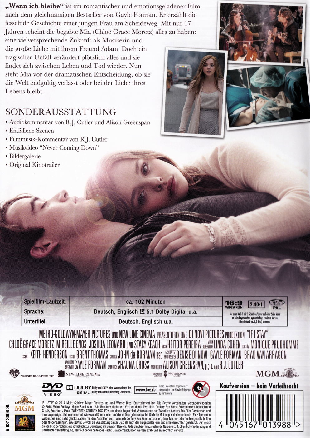 Mia Hall (Chloë Grace Moretz) muss eine schwierige Entscheidung treffen: die zwischen Karriere und Liebe. Soll die hochbegabte Cellistin ein Musikstudium an der Juilliard School aufnehmen und damit den Weg zu einer Laufbahn als Musikerin einschlagen? Für ihre große Liebe Adam (Jamie Blackley), den Sänger einer aufstrebenden Indie-Rockband, wäre in diesem Fall keine Zeit mehr. Doch dann wird ein unbeschwerter Familienausflug zu einem alles verändernden Einschnitt: Mias Eltern sterben bei einem Unfall! Und es bleibt offen, ob Mia selbst ihre Verletzungen überleben wird. Sie fällt ins Koma und steht jetzt - im außerkörperlichen Zustand - erneut vor einer folgenreichen Weichenstellung: Soll sie bleiben und sich ihrem auf tragische Weise veränderten Leben stellen oder soll sie gehen?