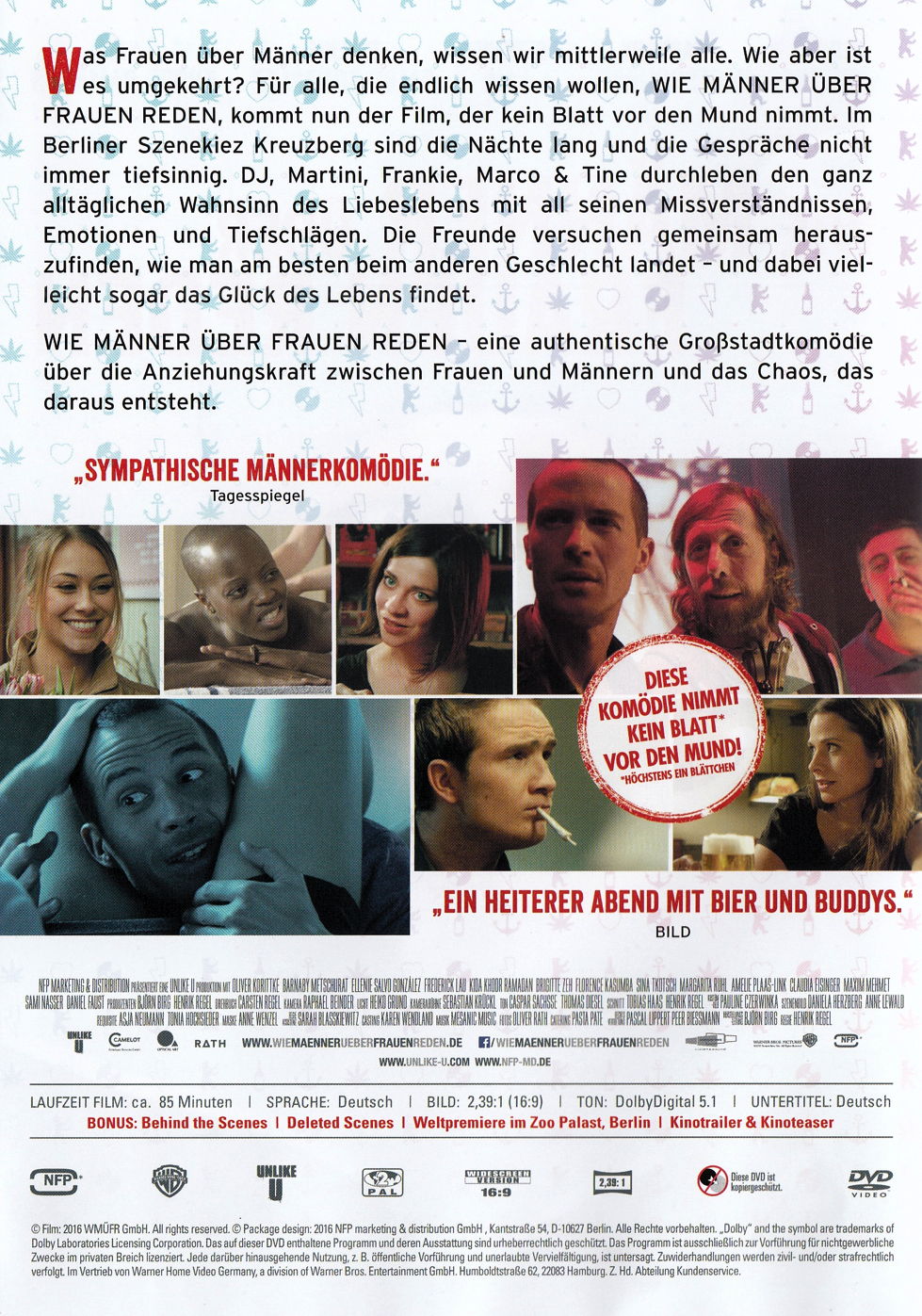 Was Frauen über Männer denken, wissen wir mittlerweile alle. Wie aber ist es umgekehrt? Für alle, die endlich wissen wollen, Wie Männer über Frauen reden, kommt nun der Film, der kein Blatt vor den Mund nimmt. Im Berliner Szenekiez Kreuzberg sind die Nächte lang und die Gespräche nicht immer tiefsinnig. DJ, Martini, Frankie, Marco & Tine durchleben den ganz alltäglichen Wahnsinn des Liebeslebens mit all seinen Missverständnissen, Emotionen und Tiefschlägen. Die Freunde versuchen gemeinsam herauszufinden, wie man am besten beim anderen Geschlecht landet - und dabei vielleicht sogar das Glück des Lebens findet.