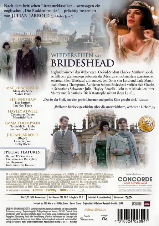 England zwischen den Weltkriegen. Beim Studium in Oxford freundet sich Charles Ryder (Matthew Goode) mit dem lasziven, exzentrischen Freigeist Sebastian Flyte (Ben Whishaw) an, Sohn aus vermögendem Haus. Charles ist der glamourösen Welt seines neuen Freundes schnell verfallen, die beiden sind bald unzertrennlich. Charles ist überglücklich, als er nach Brideshead eingeladen wird, in das prächtige Schloss von Sebastians Familie. Betört von dieser Umgebung und bezaubert von ihrer Schönheit, verliebt Charles sich unsterblich in Sebastians Schwester Julia (Hayley Atwell) - sehr zum Missfallen ihrer strengen Mutter (Emma Thompson) und Sebastians. Die Katastrophe nimmt ihren Lauf...