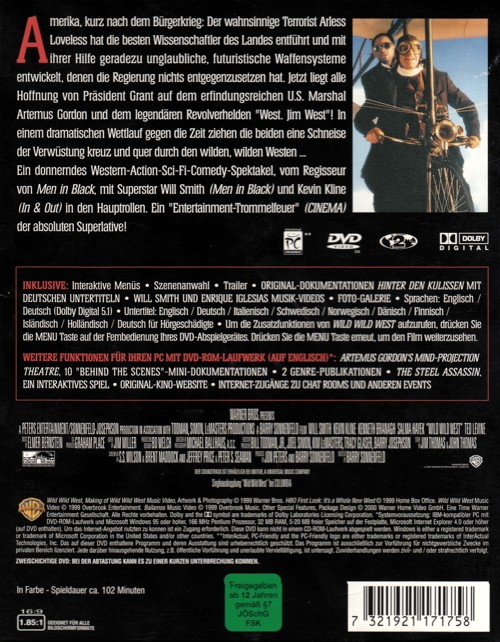 Amerika, kurz nach dem Bürgerkrieg: Der wahnsinnige Terrorist Arless Loveless hat die besten Wissenschaftler des Landes entführt und mit ihrer Hilfe geradezu unglaubliche, futuristische Waffensysteme entwickelt, denen die Regierung nichts entgegenzusetzen hat. Jetzt liegt alle Hoffnung von Präsident Grant auf dem erfindungsreichen U.S. Marshal Artemus Gordon und dem legendären Revolverhelden "West. Jim West"! In einem dramatischen Wettlauf gegen die Zeit ziehen die beiden eine Schneise der Verwüstung kreuz und quer durch den wilden, wilden Westen...