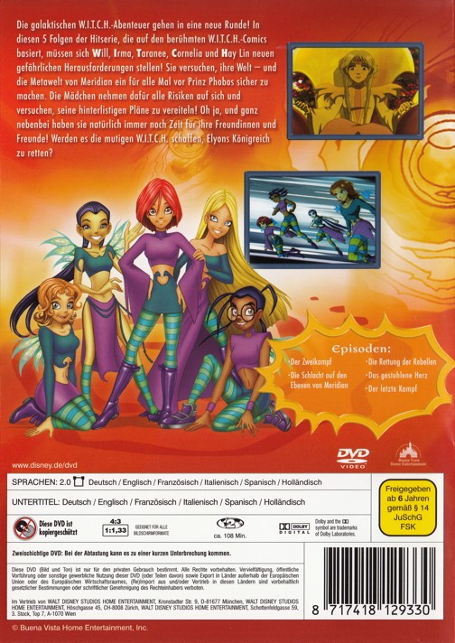Die galaktischen W.I.T.C.H.-Abenteuer gehen in eine neue Runde! In diesen 5 Folgen der Hitserie, die auf den berühmten W.I.T.C.H.-Comics basiert, müssen sich Will, Irma, Taranee, Cornelia und Hay Lin neuen gefährlichen Herausforderungen stellen! Sie versuchen, ihre Welt - und die Metawelt von Meridian ein für alle Mal vor Prinz Phobos sicher zu machen. Die Mädchen nehmen dafür alle Risiken auf sich und versuchen, seine hinterlistigen Pläne zu vereiteln! Oh ja, und ganz nebenbei haben sie natürlich immer noch Zeit für ihre Freundinnen und Freunde! Werden es die mutigen W.I.T.C.H. schaffen, Elyons Königreich zu retten?