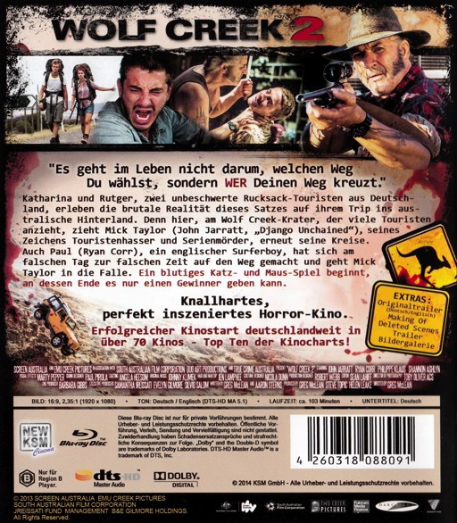 Die Rucksacktouristen Rutger (Phillipe Klaus), Katarina (Shannon Ashlyn) und der Surfer Paul (Ryan Corr) wollen den berühmten Meteoritenkrater "Wolf Creek" besuchen. Doch der Ausflug in das australische Outback wird für die Freunde zum Horrortrip, das weite Ödland erneut Schauplatz eines erbarmungslosen Amoklaufs des Psychopathen Mick Taylor (John Jarratt) – dem so ziemlich letzten Menschen, dem man im Urlaub begegnen möchte. Die Backpacker versuchen zu fliehen, doch Mick verfolgt sie in einer nervenaufreibenden Jagd durch die verlassene Einöde. Es scheint aussichtlos, den Mann, der schon so viele Leben auf dem Gewissen hat, aufzuhalten. Um zu überleben, was bisher niemand überlebt hat, müssen die Freunde die Grenzen der Menschlichkeit hinter sich lassen und selbst zu gewissenlosen Monstern werden...