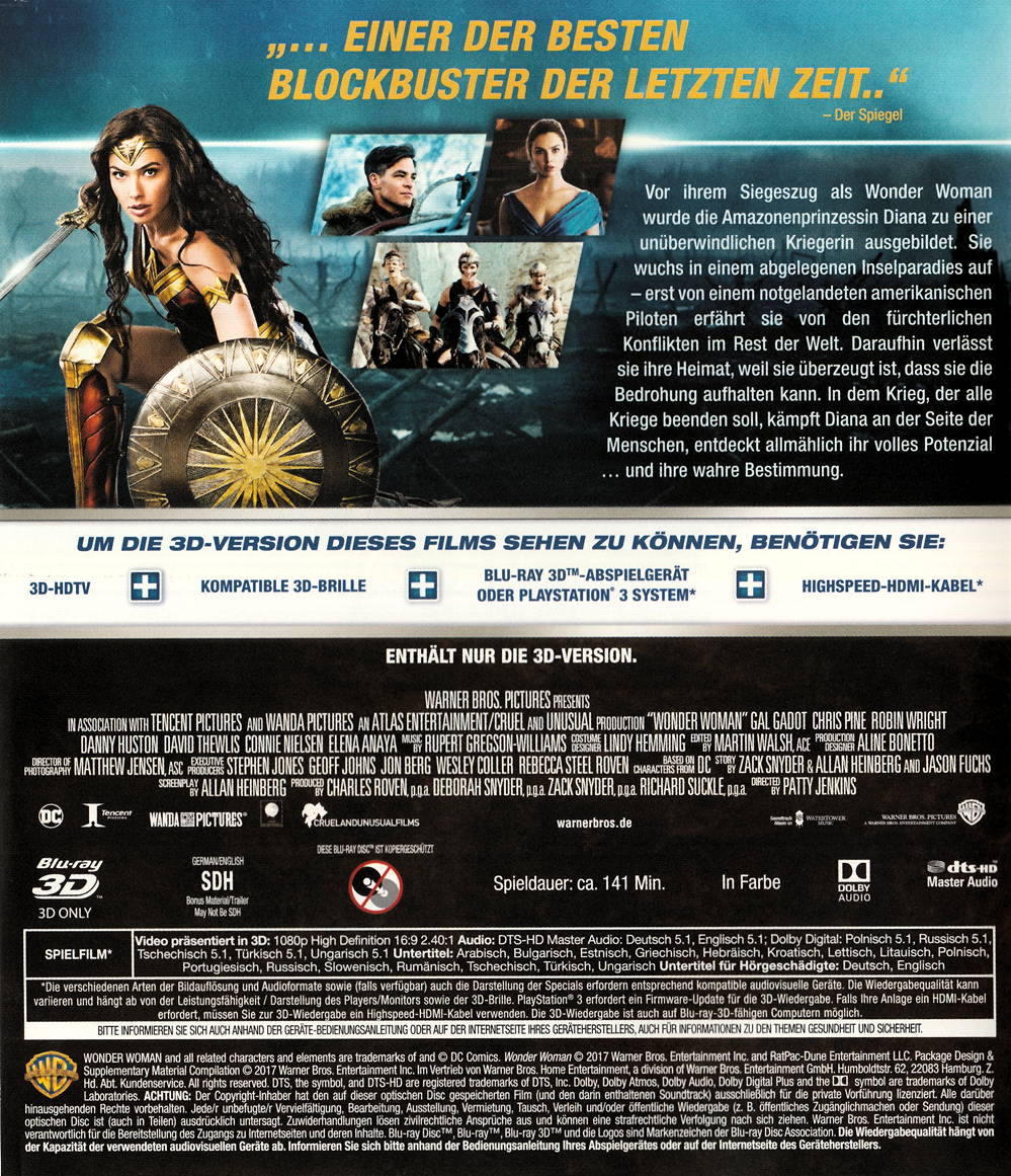 Gal Gadot, Chris Pine, Connie Nielsen, Robin Wright, Danny Huston, David Thewlis, Elena Anaya, Lucy Davis, Ewen Bremner, Saïd Taghmaoui...Eugene Brave Rock, Lisa Loven Kongsli, Anne Wolfe