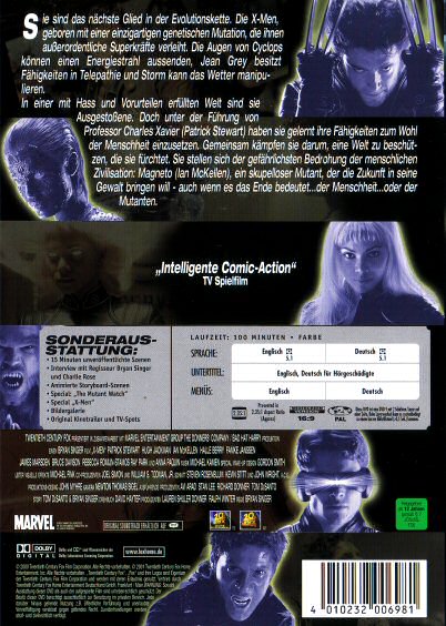 Sie sind das nächste Glied in der Evolutionskette. Die X-MEN, geboren mit einer einzigartigen genetischen Mutation, die ihnen ausserordentliche Superkräfte verleiht. Die Augen von Cyclops können einen Energiestrahl aussenden, Jean Grey besitzt Fähigkeiten in Telepathie und Storm kann das Wetter manipulieren.