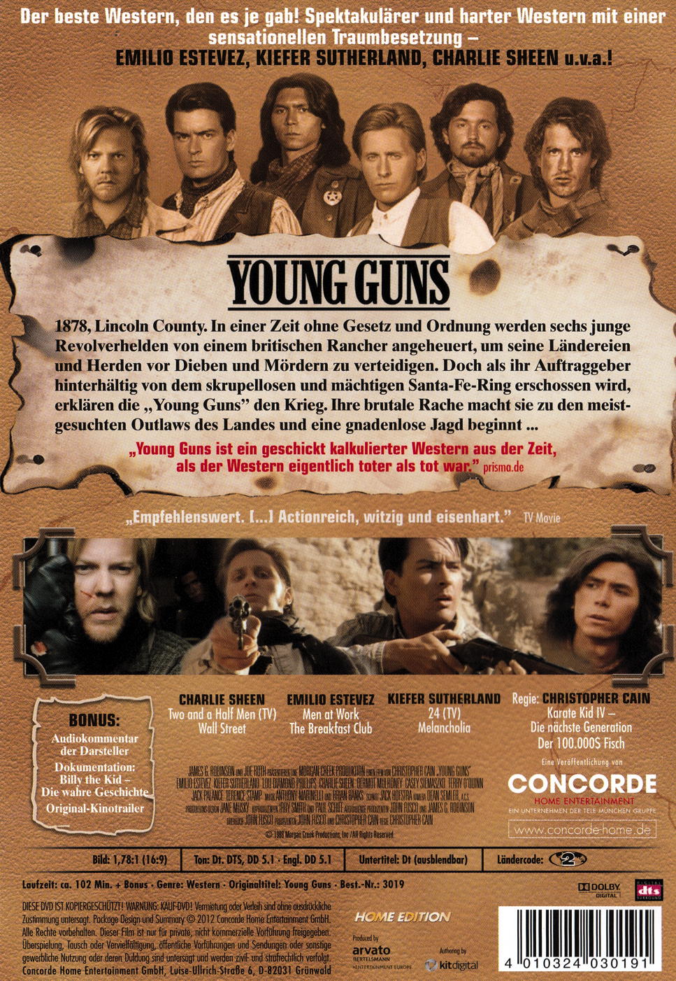 1878, Lincoln County. In einer Zeit ohne Gesetz und Ordnung werden sechs Aussenseiter von einem Rancher angeheuert. Die "Regulators" bewachen das Land vor Dieben und Mördern. Doch das Gesetz ist machtlos gegen den korrupten und mächtigen Ring, als ihr Auftraggeber hinterhältig ermordet wurde. Die "Regulators" erklären den Krieg. Ihre brutale Rache macht sie zu den meistgesuchten Gesetzlosen des Westens. Mit der wachsenden Berühmtheit der Young Guns wird ihr Führer zur Legende. Sie nannten ihn "Billy the Kid"...