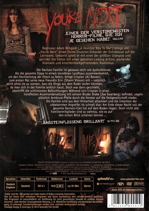 Die Davison-Familie ist genauso reich wie dysfunktional. Als die gesamte Sippe in einem mondänen Landhaus zusammenkommt, um den Hochzeitstag der Eltern zu feiern, bringt Crispian (AJ Bowen) zum ersten Mal seine neue Freundin Erin (Sharni Vinson) mit - natürlich nicht ohne sie zu warnen, dass die Dinge aus dem Ruder laufen könnten, da man sich in der Familie leidlich hasst. Doch was dann geschieht, übertrifft die schlimmsten Befürchtungen: Während sich Crispian in einer handfesten Auseinandersetzung mit seinem Bruder Drake (Joe Swanberg) befindet, segeln plötzlich Armbrust-Pfeile durch die Fenster auf die Festgesellschaft nieder. Die Familie wird aus dem Hinterhalt attackiert und die Intention der unbekannten Angreifer ist schnell klar: Am Ende dieser Nacht soll der gesamte Davison-Clan tot auf dem Boden liegen. Doch nicht alle Familienmitglieder sind so wehrlos, wie es auf den ersten Blick scheinen könnte...
