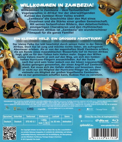 Der kleine Falke Kai lebt beschützt durch seinen Vater in der Ödnis Afrikas. Doch Kai ist jung und möchte nichts lieber, als aufregende Abenteuer erleben. Als er von der sagenhaften Stadt Zambezia erfährt, die am Rande eines majestätischen Wasserfalls tief im Herzen Afrikas liegt, gibt es für den Falken kein Halten mehr. Gegen den Willen seines Vaters macht Kai sich auf den Weg, um sich den heldenhaften Hurricane-Fliegern anzuschließen, die für die Sicherheit Zambezias sorgen und zu den besten Fliegern Afrikas zählen. Sein Vater macht sich große Sorgen und folgt seinem Sohn, wird bei seiner Suche jedoch von Zambezias Erzfeind Budzo, einer intriganten Leguanechse, gefangen genommen. Zusammen mit den hinterlistigen, aber leicht vertrottelten Geiern plant Budzo Zambezia anzugreifen. Der kleine Kai muss sich der Gefahr stellen und beweisen, dass er nicht nur ein Mitglied der Hurricane-Flieger ist, sondern vielmehr ein Mitglied der großen Vogelfamilie Zambezias, die es nur gemeinsam schaffen kann, Budzos bösen Plan zu vereiteln.
