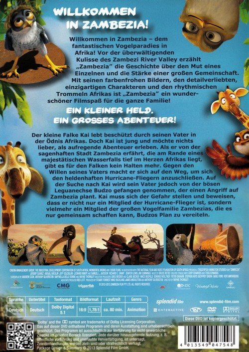 Der kleine Falke Kai lebt beschützt durch seinen Vater in der Ödnis Afrikas. Doch Kai ist jung und möchte nichts lieber, als aufregende Abenteuer erleben. Als er von der sagenhaften Stadt Zambezia erfährt, die am Rande eines majestätischen Wasserfalls tief im Herzen Afrikas liegt, gibt es für den Falken kein Halten mehr. Gegen den Willen seines Vaters macht Kai sich auf den Weg, um sich den heldenhaften Hurricane-Fliegern anzuschließen, die für die Sicherheit Zambezias sorgen und zu den besten Fliegern Afrikas zählen. Sein Vater macht sich große Sorgen und folgt seinem Sohn, wird bei seiner Suche jedoch von Zambezias Erzfeind Budzo, einer intriganten Leguanechse, gefangen genommen. Zusammen mit den hinterlistigen, aber leicht vertrottelten Geiern plant Budzo Zambezia anzugreifen. Der kleine Kai muss sich der Gefahr stellen und beweisen, dass er nicht nur ein Mitglied der Hurricane-Flieger ist, sondern vielmehr ein Mitglied der großen Vogelfamilie Zambezias, die es nur gemeinsam schaffen kann, Budzos bösen Plan zu vereiteln.