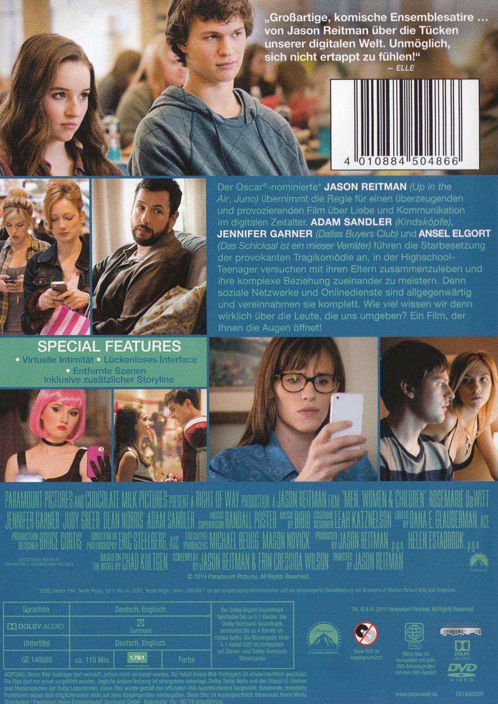 Versiert choreografiert der mehrfach Oscar-nominierte Regisseur Jason Reitman ein starkes Ensembledrama über Liebe und Kommunikation im digitalen Zeitalter. Adam Sandler, Jennifer Garner und Ansel Elgort führen die Starbesetzung der provokanten Tragik-Komödie an, in der High-School-Teenager und ihre Eltern um ihr Zusammenleben und eine komplexe Interaktion ringen. Denn soziale Netzwerke und Online-Dienste sind allgegenwärtig und vereinnahmen sie komplett. Die Frage ist: Wissen wir heute nicht tatsächlich viel zu wenig über die Menschen, die uns am nächsten stehen?