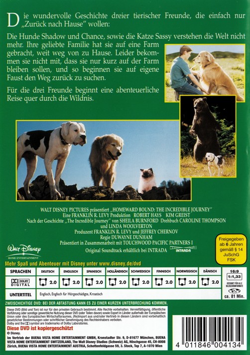 Die Hunde Shadow und Chance und die Katze Sassy verstehen die welt nicht mehr. Ihre geliebte Familie hat sie auf eine Farm gebracht, weit weg von zu Hause. Dass es nur ein vorrübergehender Aufenthalt sein soll, begreifen sie nicht. Ausbrechen und zurück nach Hause - das grosse Abenteuer beginnt...