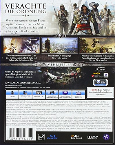 Assassin's Creed 4: Black FlagAsssassin’s Creed 4: Black Flag erzählt die Geschichte von Edward Kenway, einem jungen britischen Mann, der weder Gefahren noch Abenteuer scheut und im Dienst der Royal Navy Kaperfahrten durchführt. Als sich der Krieg der bedeutenden Königreiche dem Ende neigt, verschreibt sich Edward der Piraterie. Edward ist ein unerschütterlicher Pirat und erfahrener Kämpfer, der sich schon bald in dem uralten Krieg zwischen Assassinen und Templern wiederfindet. Das Spiel ist in den Anfängen des 18. Jahrhunderts angesiedelt und konfrontiert Spieler mit den berüchtigtsten Piraten der Geschichte, wie etwa Blackbeard und Charles Vane. Asssassin’s Creed 4: Black Flag nimmt die Spieler mit auf eine spannende Reise zu den Karibischen Inseln in einer turbulenten und brutalen Epoche, die später als das Goldene Zeitalter der Piraten bekannt wurde. Das Spielgefühl von Asssassin’s Creed 4: Black Flag orientiert sich an den bewährten Grundsätzen der Reihe. Das Spiel bietet eine riesige offene Spielewelt mit mehr als 50 Schauplätzen. Der Kampf kombiniert die Bewaffnung der Assassinen mit der Ausrüstung des Zeitalters und belohnt waghalsiges als auch leises Vorgehen. Der bekannte Mehrspielermodus der Reihe wird in Assassin’s Creed 4: Black Flag abwechslungsreicher und gnadenloser denn je. Zum Vergrössern bitte Bild anklicken. Zum Vergrössern bitte Bild anklicken. Zum Vergrössern bitte Bild anklicken. Die StoryDas goldene Zeitalter der Piraterie: Wir schreiben das Jahr 1715. Piraten herrschen über die karibische See und haben ihre eigene gesetzlose Republik errichtet, in der Korruption, Gier und Grausamkeit allgegenwärtig sind. Unter diesen Gesetzeslosen ist ein junger Captain namens Edward Kenway. Sein Kampf um Ruhm hat ihm den Respekt solcher Legenden wie Blackbeard eingebracht, doch er zog ihn auch hinein in den alten Krieg zwischen den Assassinen und den Templern - ein Krieg, der vielleicht alles zerstören könnte, was die Piraten sich aufgebaut haben. Edward Kenway: In diese Welt hinein segelt ein junger, eingebildeter und furchterregender Captain namens Edward Kenway. Ein charismatischer, doch brutaler Piratenkapitän, ausgebildet durch Assassinen. Edward kann mühelos zwischen einer Reihe neuer Waffen wechseln, inkl. vier Steinschlosspistolen und zweifachen Entermessern, und der Versteckten Klinge des Assassinenordens. Die Karibik zum Anbruch des 18. Jahrhunderts Entdecke die reichhaltigste Welt, die es je in Assassin's Creed gegeben hat. Bewege dich unter solch legendären Piraten wie Blackbeard, Calico Jack und Benjamin Hornigold, während du auf den Bahamas eine gesetzlose Republik errichtest und die atemberaubenden Ereignisse nacherlebst, die das goldene Zeitalter der Piraterie geprägt haben. Führe das Leben eines Piraten in 50 einzigartigen Schauplätzen, von Kingston bis Nassau. Gestalte als Captain dein Schiff nach deinen Wünschen, suche verlorene Schätze, jage seltene Tiere und plündere untergegangene Schiffswracks. Rechtliche Hinweise Aufgrund von produktionsspezifischen Anpassungen kann das Design der Verpackung von dem dargestellten Produktbild abweichen. Der Inhalt bleibt dabei selbstverständlich gleich.