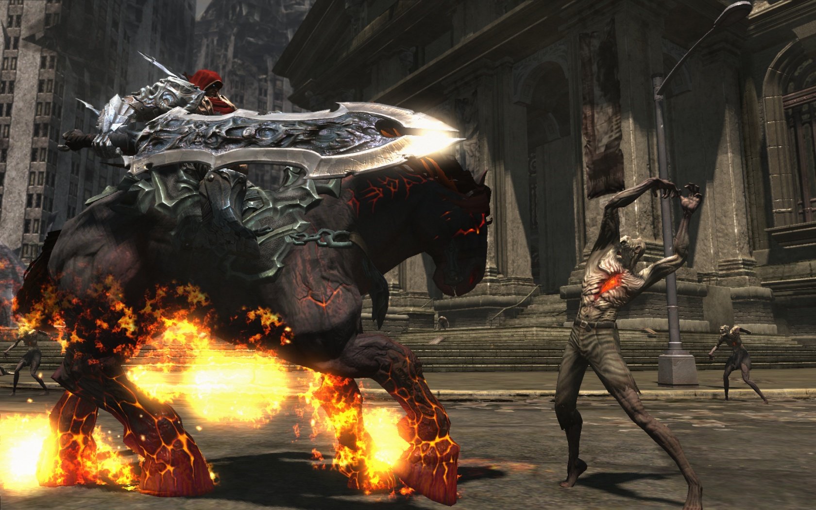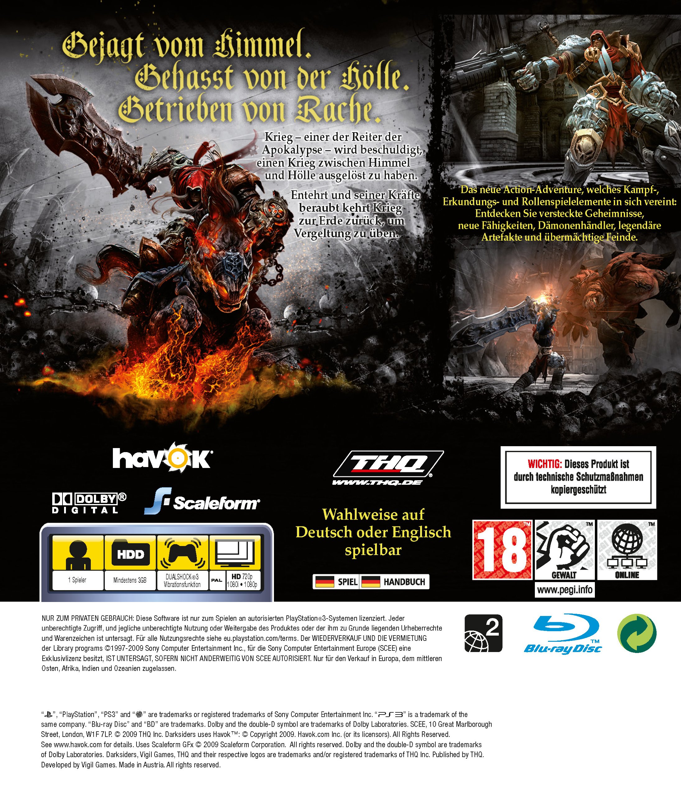 Darksiders ist ein Action-Adventure, das Sie mitten in die Apokalypse versetzt. Die Menschheit ist dabei einer furchtbaren Verschwörung zum Opfer gefallen: Dunkle Mächte haben bewusst das Ende der Zeit zu früh eingeläutet und Dämonen ausgesandt, um die gesamte Welt zu verwüsten. Sie übernehmen im Spiel die Rolle eines Reiters der Apokalypse! Urspünglich sollten die Reiter den Untergang der Welt überwachen. Doch der Verrat ihres Meisters bringt sie dazu, dass sie ihre Phantomrösser gegen die Truppen ins Feld führen, die hinter der Verschwörung stecken!