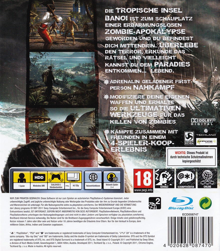 Der Spieler wird in die Welt der Dead Island gezogen, am Rande eines geheimnisvollen Epidemie, die plötzlich und ohne Vorwarnung auf der fiktiven Insel Banoi ausbricht. Als Gast der Royal Palms Resort, sollte es für den soll ein Traumurlaub werden, ein luxuriöses Wochenende an den schönen Stränden einem tropischen Paradieses. Aber mit der Realität eines Zombie-Apokalypse konfrontiert, gibt es nur noch eins zu tun: überleben. Dies ist Dead Island … ein Paradies zu sterben.