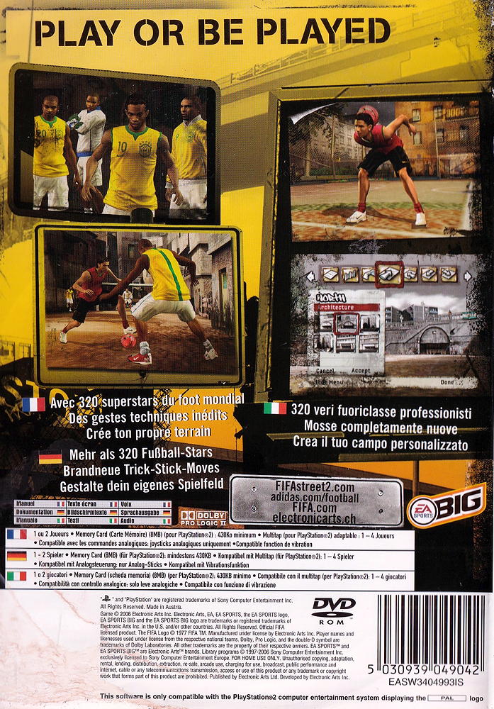 Kontere in den Skills-Battles die Moves deines Gegners und entzaubere dessen Tricks. Packst du die demütigenden Moves aus, aktivierst du einen Trick-Multiplikator, durch den du das Skill-Duell erst richtig dominierst. Ausserdem kannst den neuen Gamebreaker-Finishing Move einsetzen. Sammle während des Gamebreakers drei Starwertungen und gewinne das Spiel auf der Stelle! FIFA Street 2 von EA SPORTS BIG™ - Spiele selbst oder werde zum Spielball anderer!