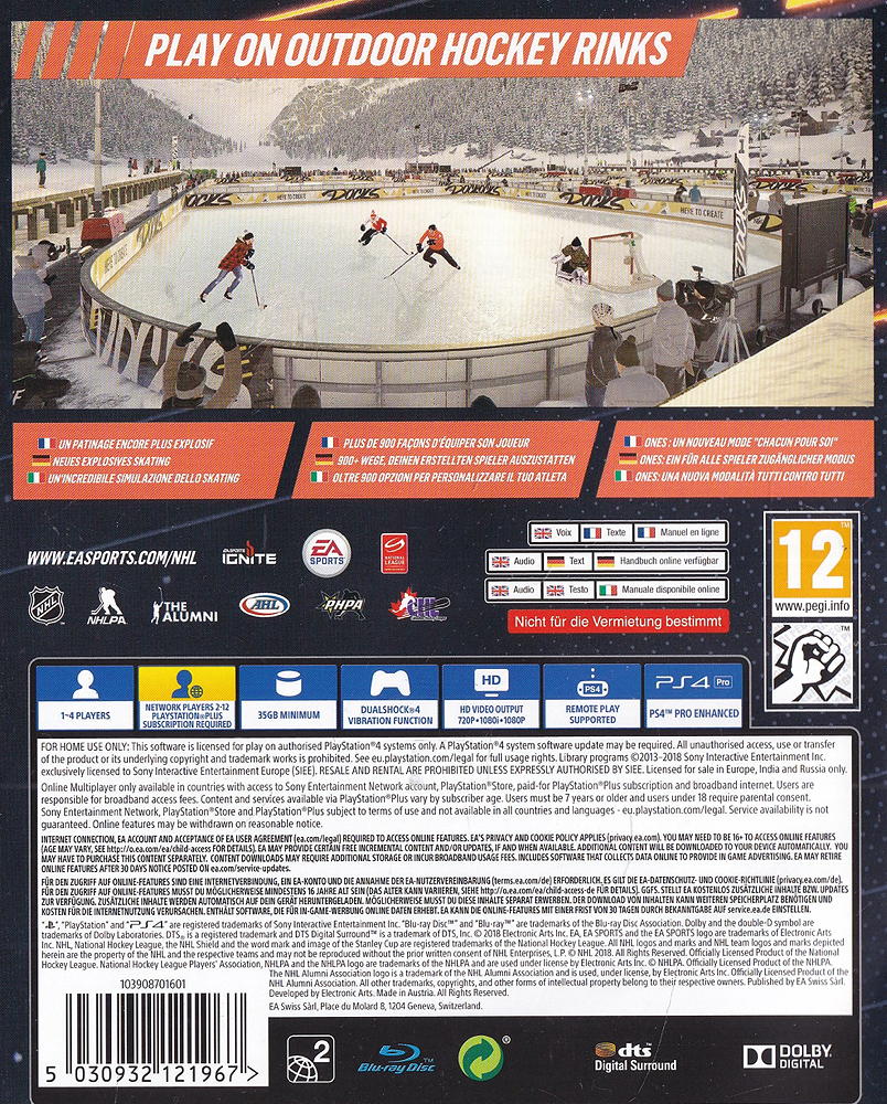 In NHL 19 kehrt das Eishockey zu seinen Wurzeln - sprich: nach draussen - zurück. Spiele im Freien und arbeite dich in neuen und bekannten Modi vom zugefrorenen See zum Profi hoch. Spiele mit oder gegen mehr als 200 der grössten Eishockeylegenden, wie Wayne Gretzky, und geniesse die atemberaubende Real Player Motion Tech Gameplay-Technologie. RPM Tech ermöglicht explosives Skating mit schnellerer Beschleunigung und besserer Reaktivität. Ausserdem ermöglicht eine neue Kollisionsphysik noch härtere und spektakulärere Checks.