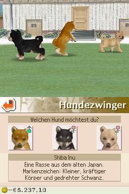 Mach Platz! In Nintendogs dreht sich alles um das Grossziehen putziger Hundebabys - und zwar als Simulationsspiel in höchster technischer Perfektion. Zu Beginn wählt man aus einem ganzen Stall überaus putziger Hundebabys die aus, die man fortan aufziehen möchte.