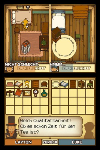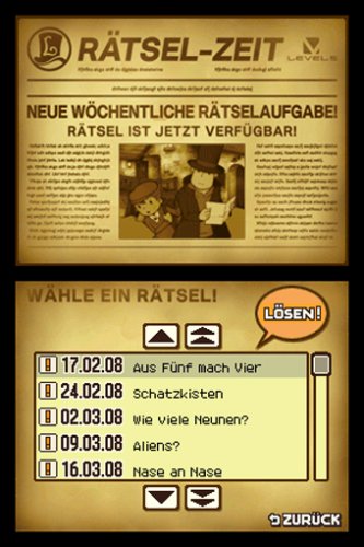 Professor Layton und das geheimnisvolle Dorf ist ein Rätsel- und Abenteuerspiel, das jung und alt anspricht und sie mit steinharten Kopfnüssen an ihre Grenzen führt. Sie tauchen in eine fesselnde Story ein, in deren Verlauf sie über 130 Rätsel zu knacken haben – von Logikaufgaben bis zu Scherzfragen für Querdenker. Wer alle Geheimnisse der Bewohner von Saint-Mystère aufdeckt, darf sich ein wahres Superhirn nennen. Der Spieler schlüpft in die Rollen des verschrobenen Professors Layton und seines jungen Gehilfen Luke – und gerät so mitten hinein in eine immer mysteriösere Geschichte. Die Mission: Den verschwundenen Goldenen Apfel finden, den ein reicher Baron seinen Erben hinterlassen hat. Doch dazu müssen sie erst jede Menge mysteriöser Ereignisse aufklären, Spuren verfolgen und knifflige Fragen beantworten. Voll animierte Szenen in Zeichentrick-Qualität führen die Spieler dabei von einer Herausforderung zur nächsten. Neben den zahlreichen Aufgaben im Hauptmodus von Professor Layton und das geheimnisvolle Dorf halten viele zusätzliche Nebenmissionen die Hirnmuskeln der Spieler auf Trab. Dabei stossen sie immer wieder auf merkwürdige Gegenstände wie Maschinenteile, Möbel oder Bildfragmente, die ihren Nutzen erst in weiteren Mini-Rätselspielen offenbaren. Selbst wenn die Spieler ihr Ziel erreichen und den Goldenen Apfel gefunden haben, lässt Professor Layton und das geheimnisvolle Dorf sie so schnell nicht los. Denn Jede Woche können sie sich über die Nintendo Wi-Fi Connection neue Rätselaufgaben herunterladen. Professor Layton und das geheimnisvolle Dorf verblüfft selbst die raffiniertesten Ratefüchse, ob alt oder jung. Wer schon mit Dr. Kawashimas Gehirn-Jogging: Wie fit ist Ihr Gehirn? seine Freude hatte, der wird sich bei der mentalen Frischzellenkur in Saint-Mystère rundum wohlfühlen.