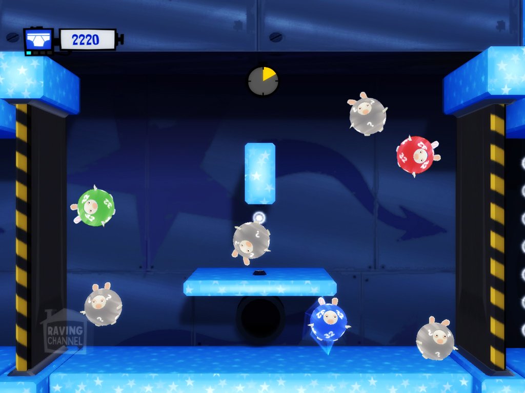 • Schüttel die Hasen! Der Spieler kann mit Hilfe der Wii- Fernbedienung oder des Wii-Balance Boards die Hasen tanzen und ihre Hüften schwingen lassen.