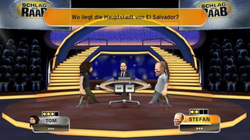 Treten Sie gegen Multitalent Stefan Raab an und versuchen Sie, dem ehrgeizigen Moderator zu zeigen, wer in Sachen Geschicklichkeit, Wissen und Action mehr auf dem Kasten hat. Stellen Sie im beliebten Quiz "Blamieren oder Kassieren" Ihr Allgemeinwissen unter Beweis und nutzen Sie ihre Geographie-Kenntnisse bei "Wo liegt was?". Beim "Pömpel-Spiel" geht's ordentlich zur Sache und beim "Kuh melken" können Sie Stefan zeigen, wer im Stall die Nase vorn hat. Das gilt natürlich nicht nur für Sie, sondern auch für Ihre Freunde, denn Schlag den Raab ist auch im Party-Modus ein Spassgarant. Holen Sie sich den Jackpot!