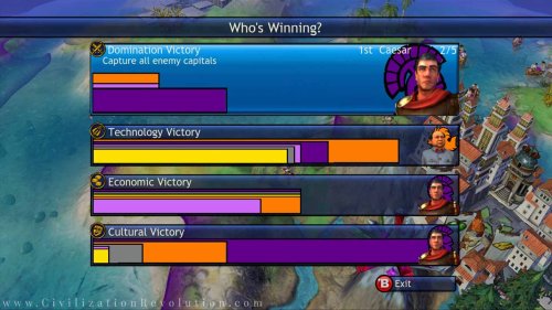 Sid Meiers Civilization Revolution ist der neueste Teil der legendären, preisgekrönten Strategiespiel-Reihe Sid Meier’s Civilization mit dem berühmten “Nur noch eine Runde!”-Suchtfaktor, der die Reihe zu einer der grossartigsten Spieleserien aller Zeiten gemacht hat. Civilization Revolution wurde (vom legendären Sid Meier und seinem Team bei Firaxis) von Grund auf neu für Konsolen und Handhelds gestaltet und nutzt die Grafik-, Gameplay- und Steuerungsmöglichkeiten der populären Spieleplattformen optimal aus. Features: * Wählen Sie Ihre Zivilisation: spielen Sie sich durch das ganze Spektrum der Geschichte mit einer von 16 Zivilisationen und ihren furchtlosen Anführern zum Sieg