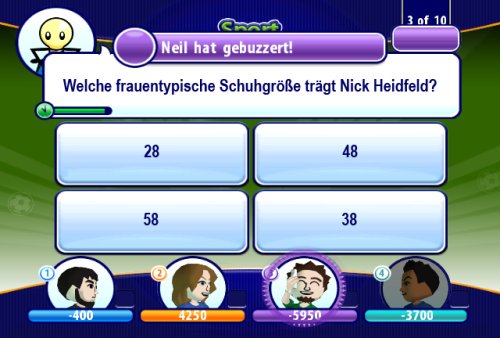 * Komplett lokalisiert! Alle Kategorien und Fragen wurden vollständig lokalisiert und inhaltlich an den deutschen, amerikanischen, britischen, französischen, spanischen bzw. italienischen Markt angepasst.