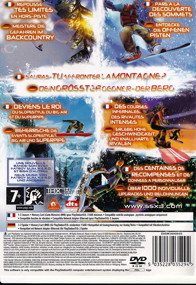 - Mit SSX 3 kann der Spieler das Spiel nach seinen Wünschen gestalten. Er hat die Möglichkeit, in verschiedenen Events (Rennen, Big Air, Slope-Style und Super Pipe) anzutreten oder sich einfach kurzfristig entscheiden, im "Freestyle" über die Piste zu boarden