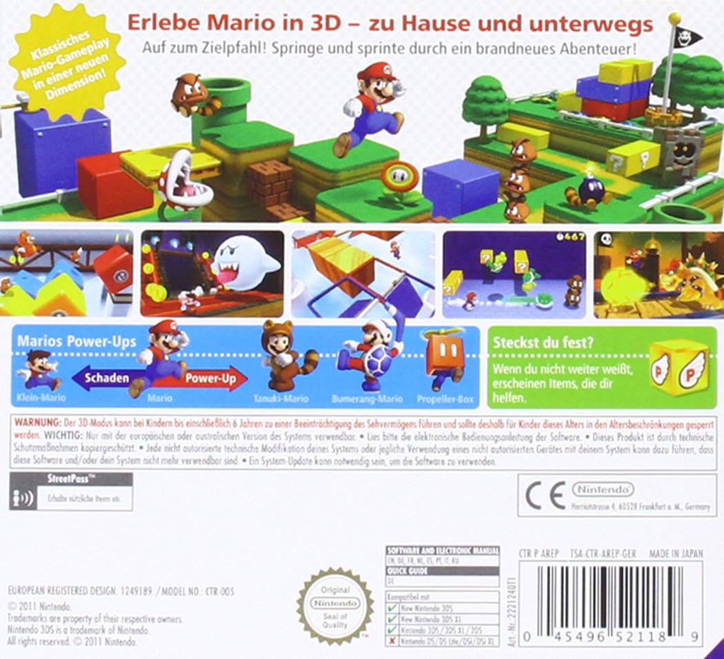 Die Story Die Story von Super Mario 3D Land: Oberschurke Bowser hat wieder einmal Prinzessin Peach gekidnappt, und Mario ist der einzige, der sie befreien kann. Der Titel kombiniert auf einzigartige Weise altbewährte Spielideen aus Klassikern wie Super Mario Bros. 3 (NES) und New Super Mario Bros. (Nintendo DS) mit Gameplay-Elementen aus neueren Mario-Spielen wie Super Mario Galaxy (Wii). Und all das in 3D. Einsteiger kommen mit dem Spiel sofort problemlos zurecht. Gleichzeitig bietet es selbst den erfahrensten Mario-Experten jede Menge Herausforderungen.