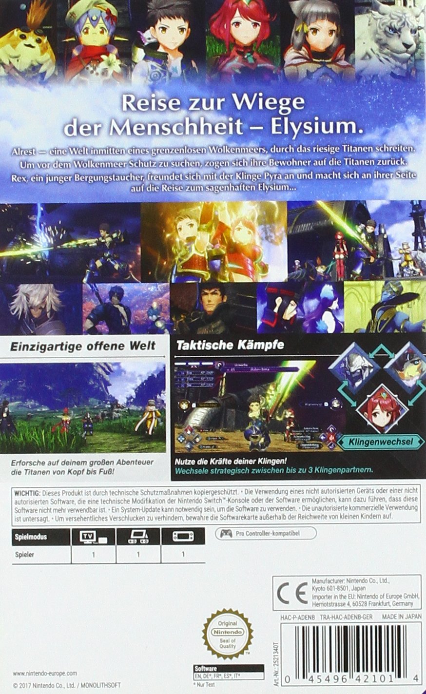Erkunde einen riesigen Ozean aus Wolken, in dem die letzten Überlebenden einer Zivilisation auf den Rücken riesiger Titanen leben. Erlebe die Geschichte von Rex und der „Klinge“ Pyra, einem mysteriösen Wesen, das ihm grosse Macht verleiht. Sucht gemeinsam nach Pyras Heimat Elysium, dem Paradies der Menschheit.