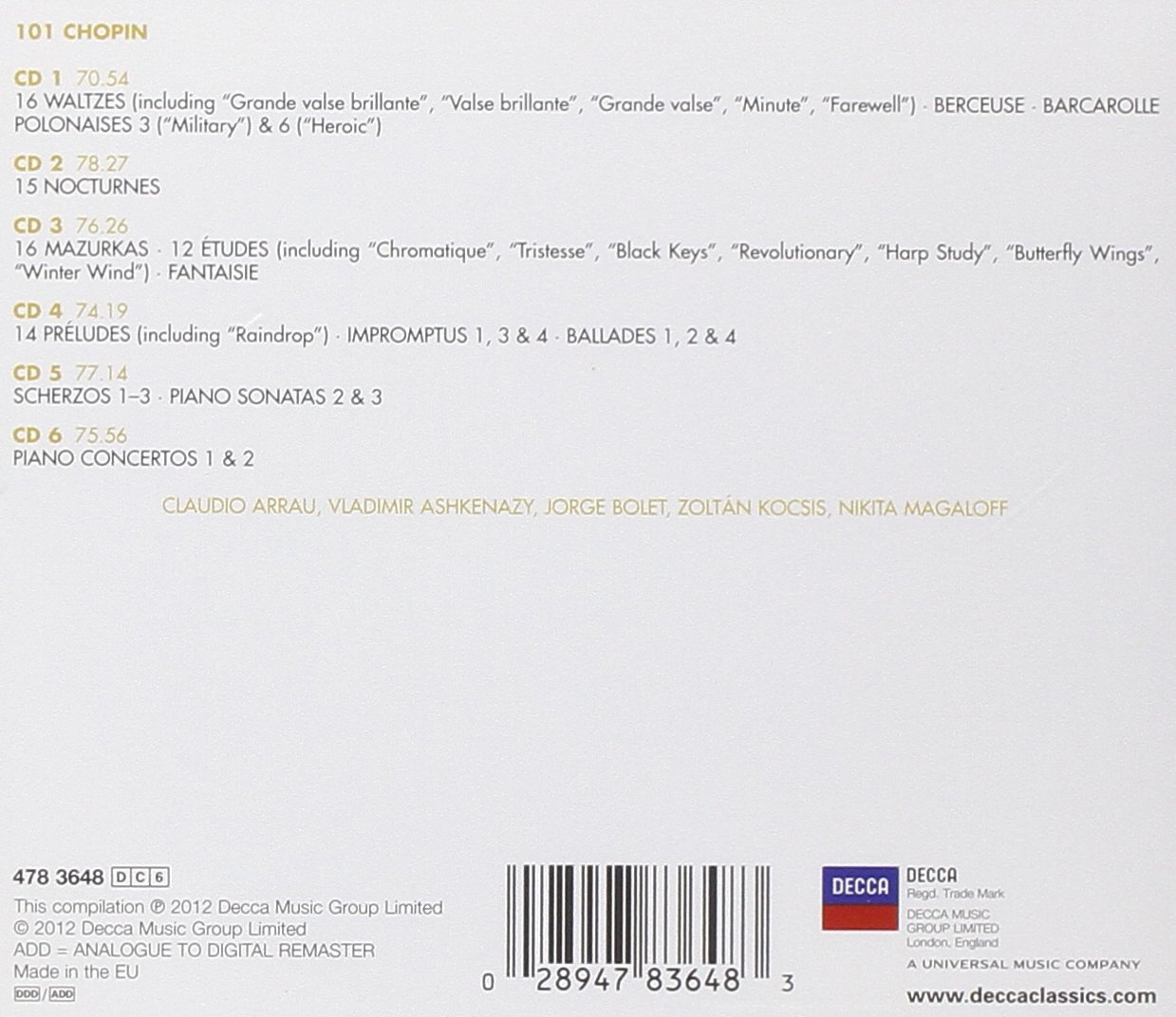 14) Waltz No. 16 in A flat, Op. posth. 15) Waltz No. 17 in E flat, Op. posth. 16) Waltz No. 19 in A minor, Op. posth. 17) Berceuse in D Flat, Op. 57