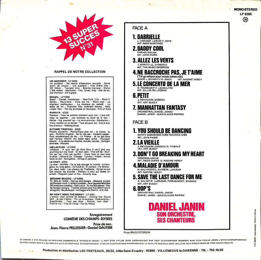 Composed By – Daniel Janin (tracks: A7, B6,), Jean-Claude Pierric (tracks: A7, B6,)